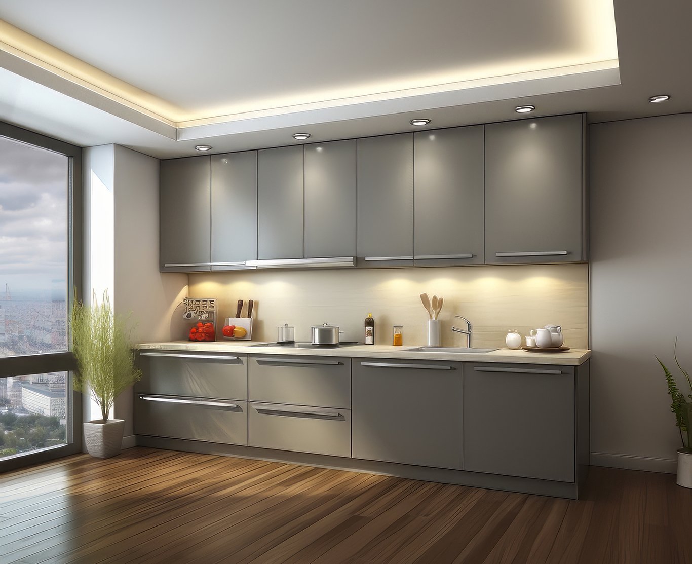 A thoughtfully designed kitchen seamlessly blends form and function, creating a space that is both practical and inviting. The layout follows the classic work triangle, connecting the sink, stove, and refrigerator to ensure an efficient flow. Storage is refined through custom cabinetry, integrated organizers, and smart space-saving features. Elegant surfaces like quartz, marble, and natural stone pair beautifully with backsplashes in glass, tile, or stainless steel, setting a sophisticated tone. Cabinet finishes vary from timeless wood textures to contemporary matte and high-gloss styles. Layered lighting—including task, ambient, and accent options—adds both warmth and depth to the space. Whether defined by soft neutrals or bold contrasts, the modern kitchen embraces smart technology, energy efficiency, and versatile design elements such as island seating. More than just a place to cook, the kitchen stands as the heart of the home, where function and personal style come together with effortless elegance.